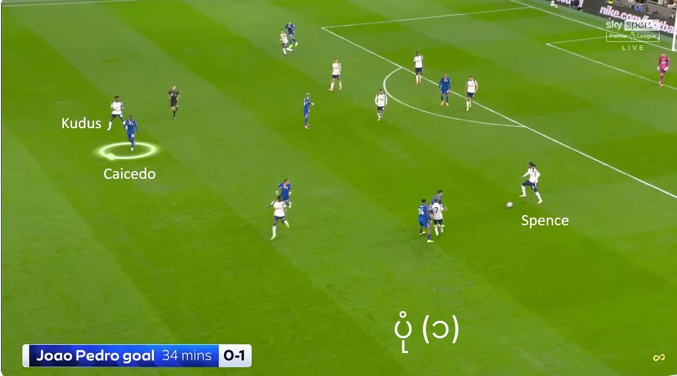 ကိုယ့်ရဲ့ခံစစ်ဇုန်ထဲကနေ ဘယ်လိုပုံစံနဲ့ ရုန်းထွက်မယ် (play out from the back) ဆိုတဲ့ အကြံအစည်၊ အစီအမံ လုံးဝမရှိခဲ့သလို ကစားပုံ နှေးကွေးနေခဲ့ပြီး ဘောလုံးယှဉ်လုလိုက်တိုင်း ချယ်လ်ဆီးဘက်ကပဲ အရယူနိုင်ခဲ့ပါတယ်..။ ပေးလိုက်ရတဲ့ အနိုင်ဂိုးမှာဆိုရင် ဗဟိုခံစစ်မှူးနှစ်ယောက်ဖြစ်တဲ့ မစ်ကီ ဗန်ဒီ ဗန်း နဲ့ ကီဗင် ဒန်ဆို တို့နှစ်ယောက်စလုံးရဲ့ ဘောလုံးဖျက်ထုတ်မှုတွေ လွဲချော်သွားရာက ခွင့်ပြုလိုက်ရတာပါ..။ အထူးသဖြင့် မွိုက်စ် ကိုင်ဆီဒို ဟာ တခြားကမ္ဘာကနေ လာပြီးကစားနေတဲ့ ကစားသမား တစ်ယောက်အလားပါပဲ..။ တော့တင်ဟမ်အသင်း ကွင်းလယ်က သူ့ကိုလုံးဝမယှဉ်နိုင်ခဲ့ပါဘူး..။