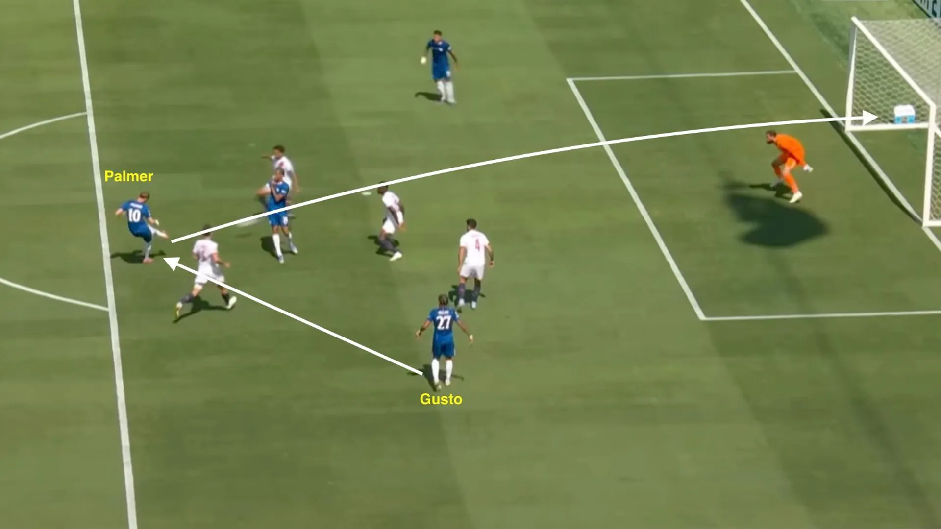 ကိုးလ် ပါးမား ဟာ ဂျာအို ပီဒရို ရဲ့ ညာဘက်ကို အယောင်ပြ ပြေးထွက်မှုအပေါ် အပြည့်အဝ အသုံးချပြီး ချယ်လ်ဆီးအသင်းရဲ့ ဒုတိယဂိုးကို လှလှပပ သွင်းယူပေးနိုင်ခဲ့ပါတယ်..။