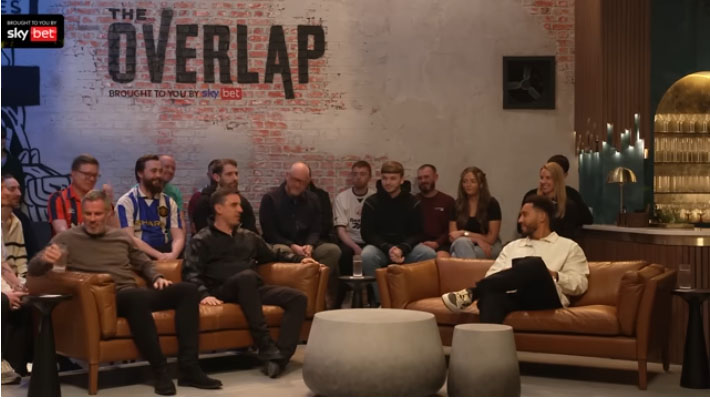 အင်္ဂါနေ့က Sky Sports ရုပ်သံဌာန၏ Sky Bet မှ တင်ဆက်ခဲ့သော ‘The Overlap’ စကားဝိုင်းအစီအစဉ်တွင် ဂယ်ရီ နဗီးလ်၊ ဂျေမီ ကာရေဂါ နှင့် ပြိုင်ဘက်အသင်း ပရိသတ်... read more